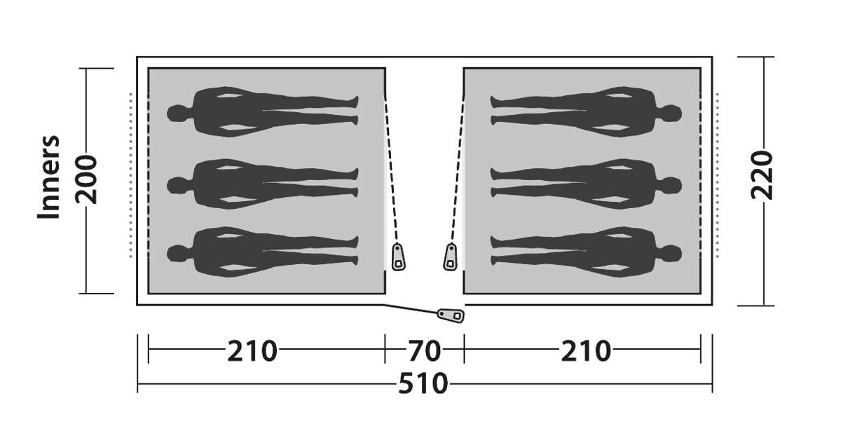 - Crew 600 er en rummelig festival-basecamp designet til grupper, der vil have plads til både fællesskab og ro. Vis-à-vis-indretningen giver ekstra privatliv i soveområderne, mens det store centrale fællesrum er ideelt til tasker, udstyr og samvær. Store sideventilationer sørger for god luftcirkulation, og to indertelt holder soveområderne organiserede. Med Dark&Chill™-teknologi, der holder teltet køligere om dagen og mørkere om natten, er Crew 600 den perfekte base til lange festivaldage og afslappede stunder sammen.