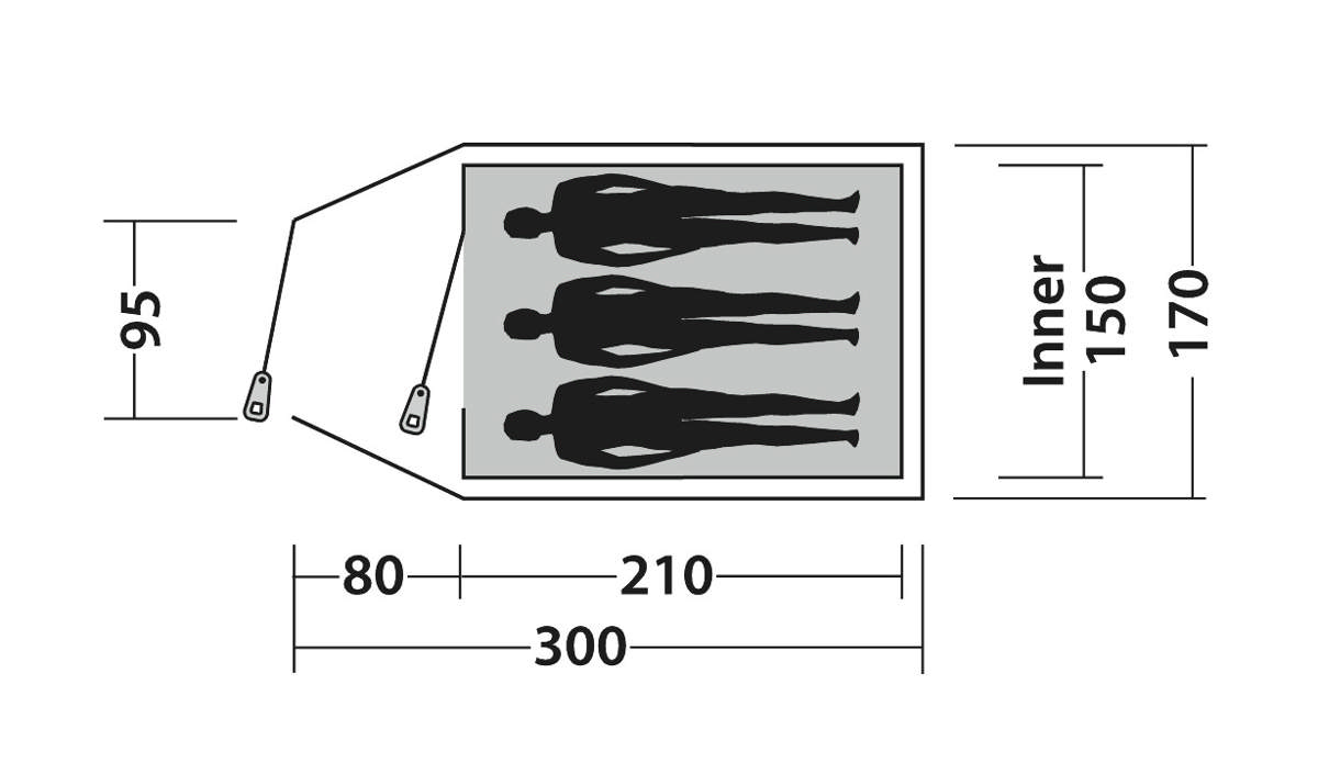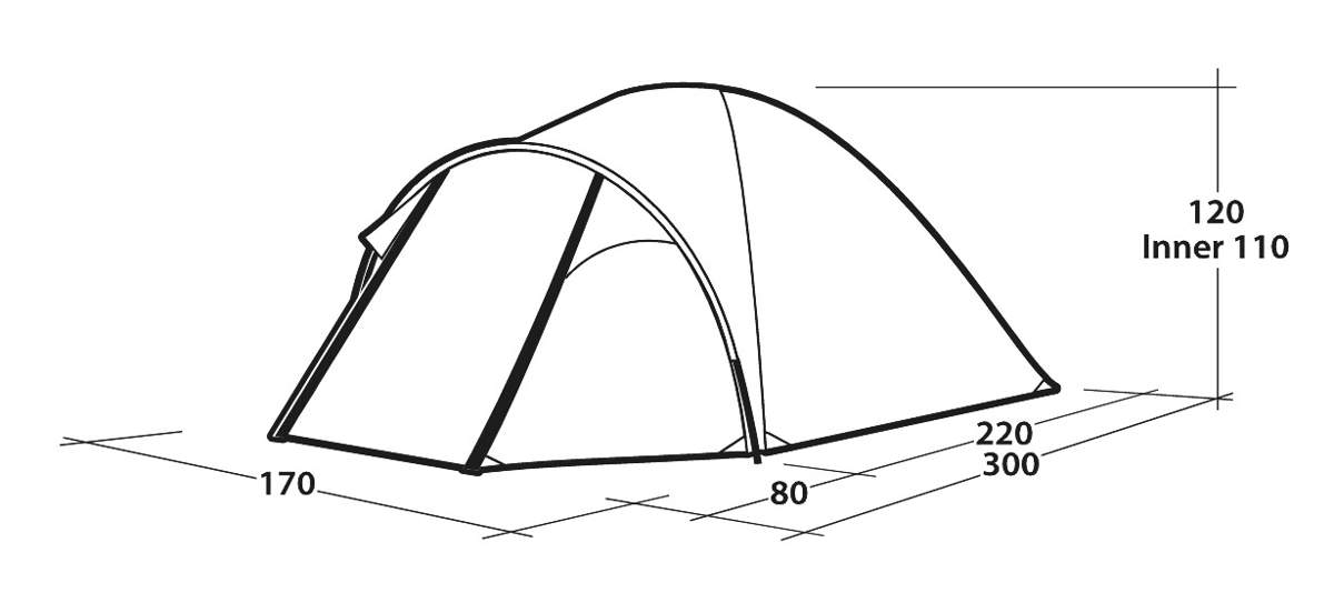 Pulse 300 er et rummeligt kuppeltelt med plads til tre.